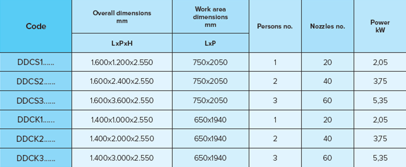 - nozzles on both sides and on ceiling;