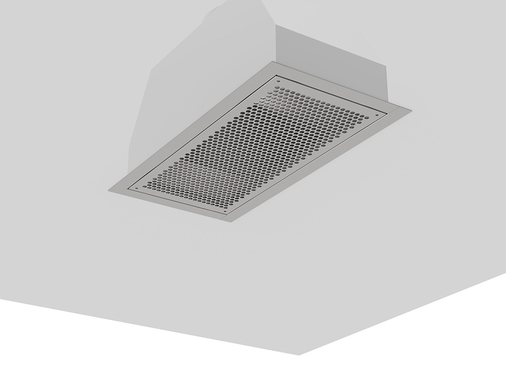 Made of stainless steel AISI 304 with scotch brite or mirror finish. Prepared for wall recessed installation at ceiling level, with removable perforated screen and with air intaking tubes, increasing in number in proportion to the size.