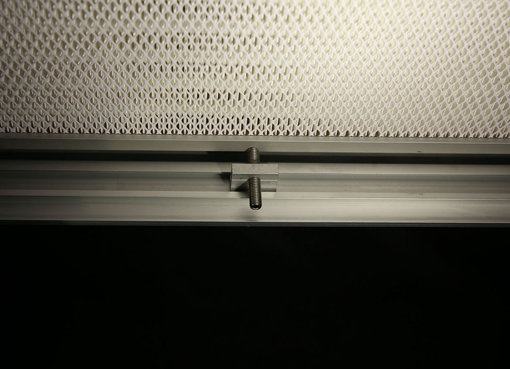 to protect the filter, made from perforated anodised aluminium plate Ø 5 mm, pitch 8 mm