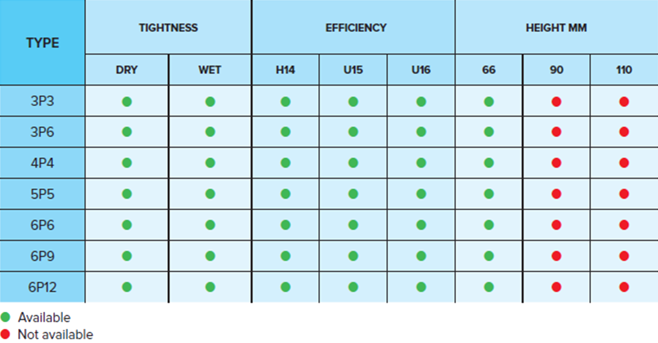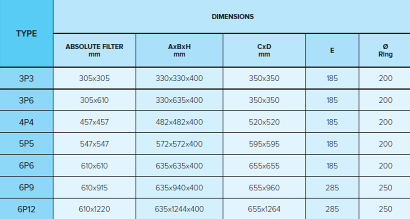 base framework which holds the absolute filter. The shape of the sections guarantees excellent fixing for the filter and makes it very easy to install.