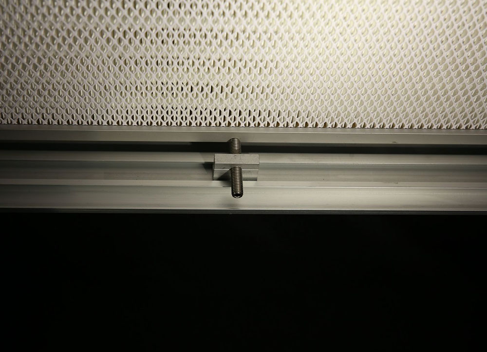 device composed of aluminium clamps, M8 grub screws in stainless steel, and ratches for fixing the diffuser.