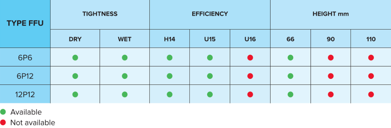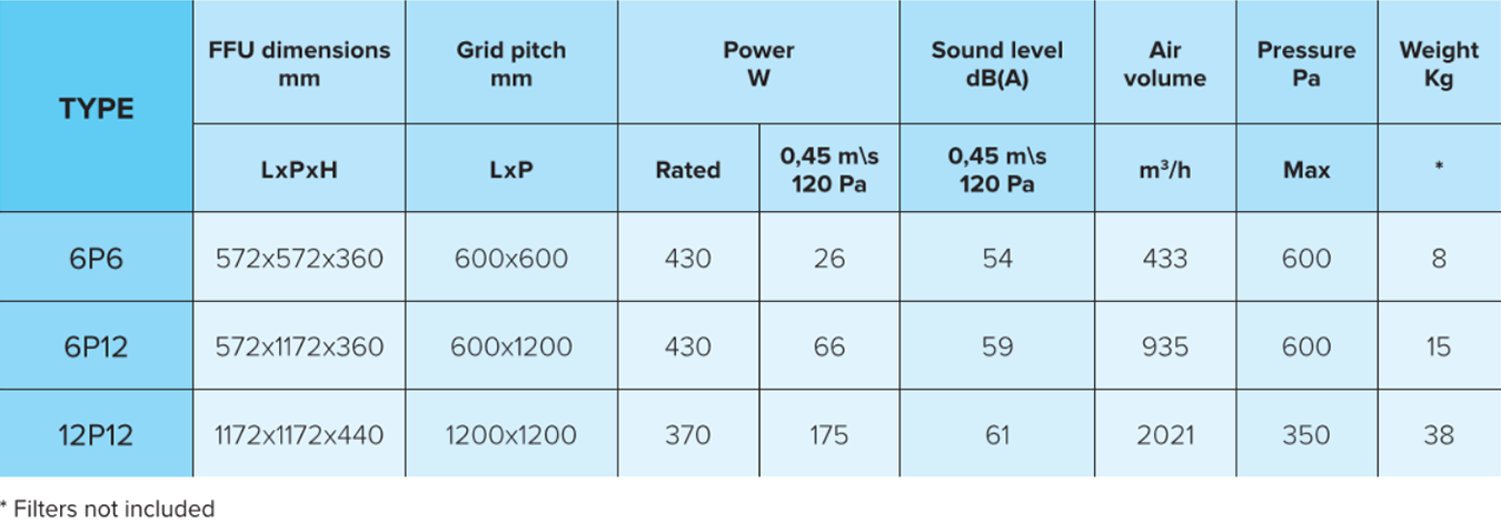 Independent Filter Fan Unit, designed for the construction of small/medium sized Cleanrooms: the Unit is equipped by a filter housing and a perforated aluminium diffuser.