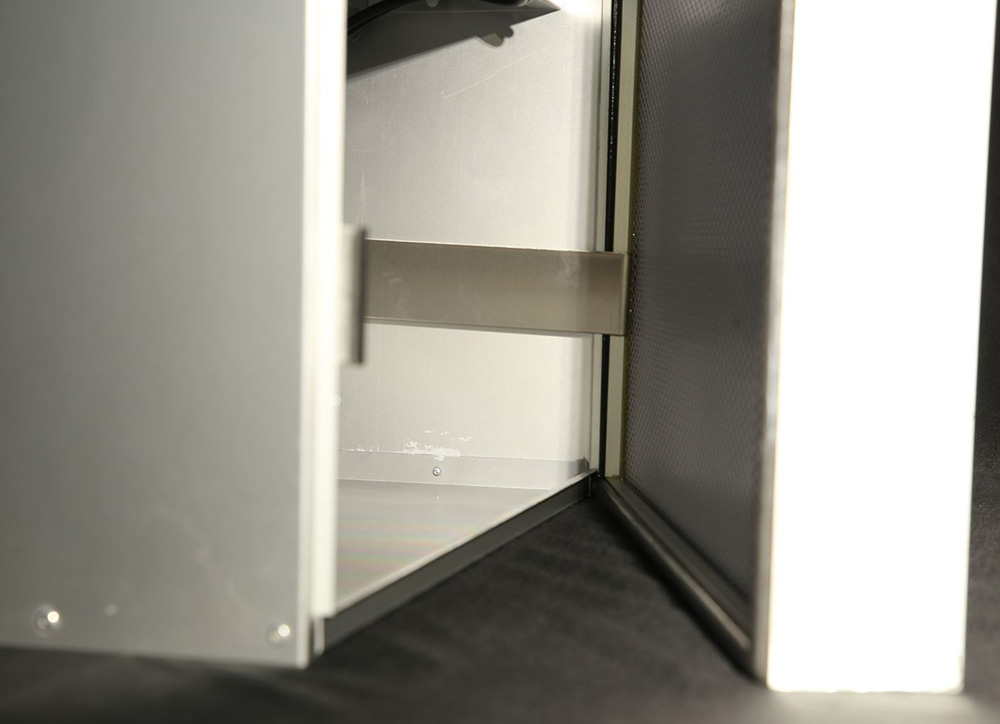 in anodised aluminium plate, suitable bent and stiffened to create a strong and rigid structure.
