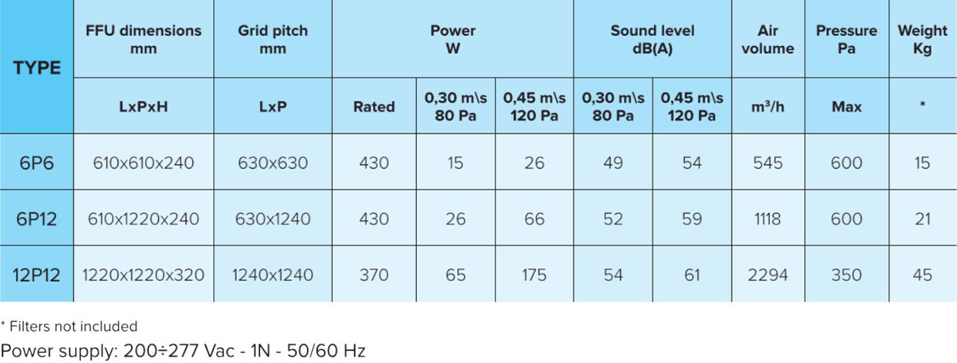 Economic and functional solution for the realization of small controlled contamination areas; the dowries of lightweght and hardiness join to the very reduced consumptions thanks to the fans with EC technology.