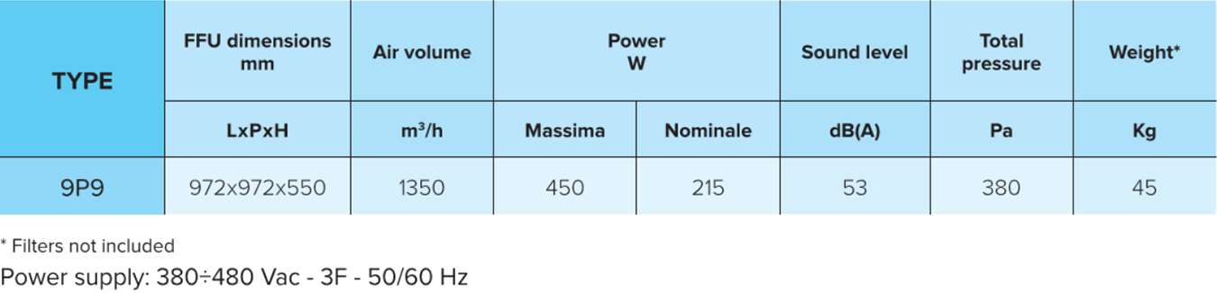 with rotor in aluminium directly coupled to three-phase electric motor IP54. EC Controller built into the fan to action, control and regulate it.